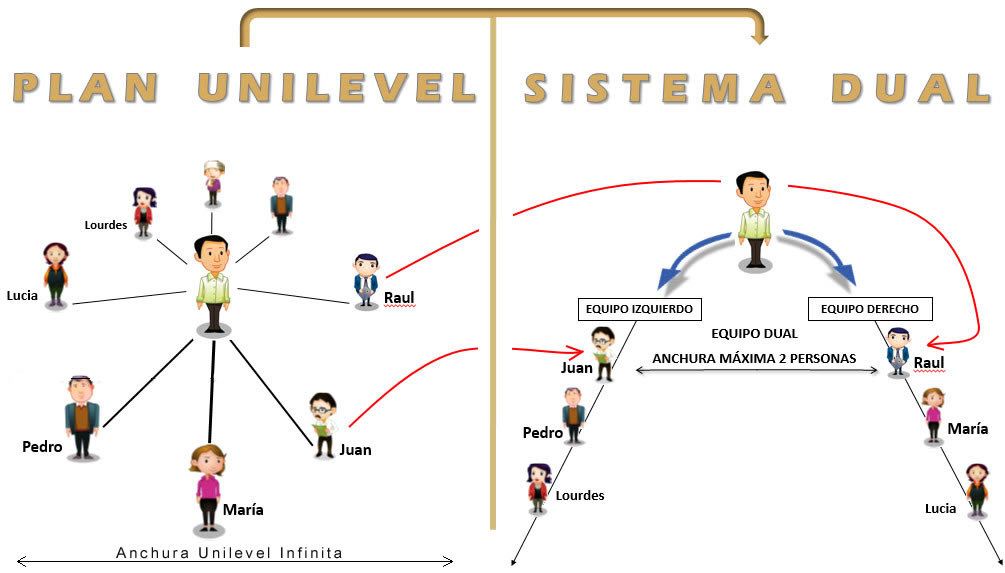 Sistema Dual de Karatbars International va creando desde su Unilevel 2 equipos, usted va a tener